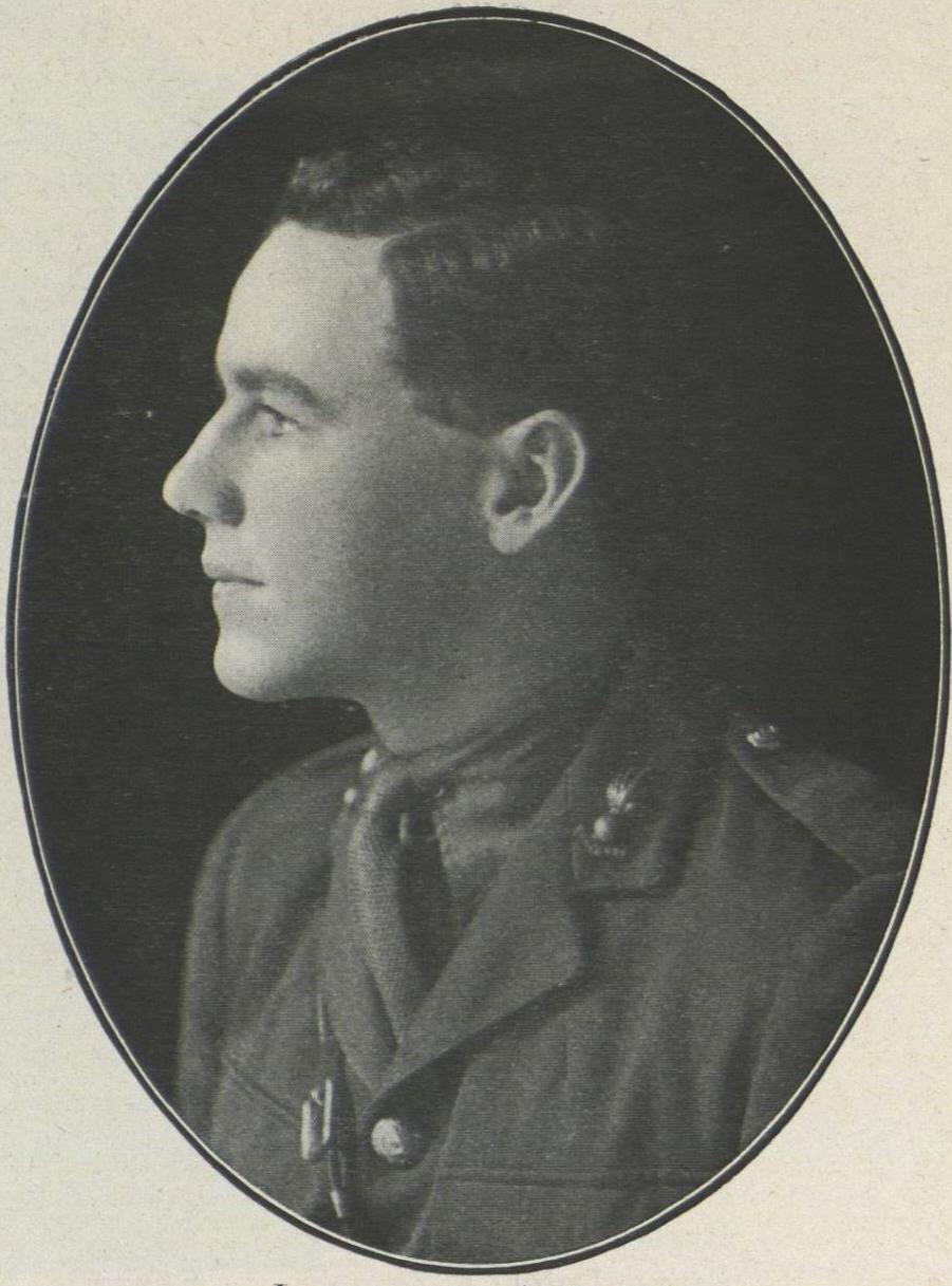 M.C., B.Sc. : Lieutenant (Acting Captain), Z Special Coy., R.E., B.E.F., France. Mobilised as A.M.F. Officer in N.S.W., 1915-16. Then, enlisting in London, February, 1917, with R.E. (Poison Gas Brigade), served as lieutenant from 4th May to the Armistice, being attached for the last 2 months to American 1st Army and returning to Australia on demobilisation. Gassed at Loos 13th May, 1918. Awarded M.C. and Mentioned in Despatches. Early education at Grafton High School. Later at St. John''s College.
