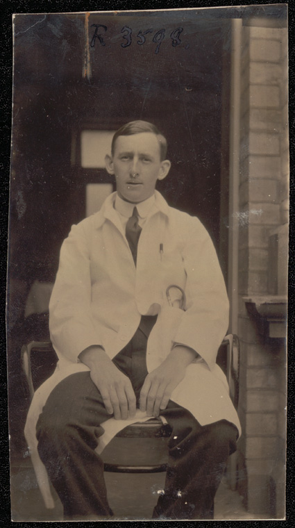 M.B., Ch.M. : Captain, A.A.M.C., A.I.F., France. Enlisting in April, 1916, and sailing 22nd August, joined 7th Australian Field Ambulance, being R.M.O. (temporary) 21st Battn. and then with 5th A.F.Amb. till invalided after Battle of Bullecourt, April, 1917. Then served at Bellicourt, Ypres and Ploegsteert Wood till December. Was with 20th Battn. in March, 1918, when Germans advanced towards Amiens, then at Villers-Bretonneux, Hangard Wood, the August Advance, Peronne and Hindenburg Line, remaining with battn. until January, 1919. Returned for demobilisation after being eight months assistant medical officer, Children''s Hospital, Shadwell, London. Early education at Barker College. Later at St. Andrew''s.