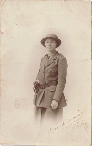 M.B., Ch.M. : Doctor, B.R.C. and R.A.M.C., France, England and Egypt. Sailing 26th June, 1915, and Enlisting in England in August, served till March, 1916, with British Red Cross at Anglo-Beige Hospital, Calais. Then was with R.A.M.C. at St. Albans, England, till January, 1917, at Dover Military Hospital till May, 1918, and at Citadel Hospital, Cairo, with Army of Occupation. Recalled to England in July, 1919, and repatriated in October. Early education at Wellesley College.