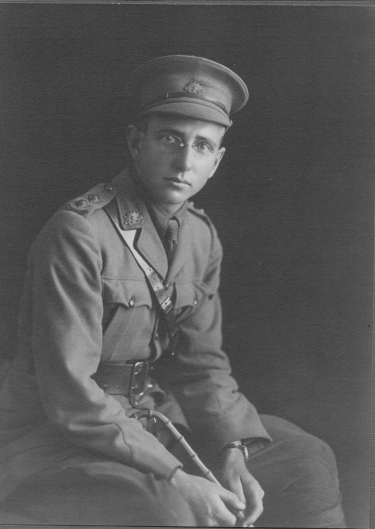 B.A., LL.B. : Lieutenant, 20th Battn., A.I.F., France. Enlisting in July, 1915, and sailing 18th May, 1916, with 3rd Divisional Cyclist Coy. as second in command, was transferred to battn. in England and joined it in France in December. Seconded to 4th Division H.Q. as A.D.C. to General Holmes, 24th January, 1917, remaining there till 31st March, when wounded between Lagnicourt and Noreuil, whence evacuated to hospital and Australia, arriving in September. A.M.F. : Lieutenant 26th Battn. Early education at Sydney Grammar School. Later at St. Andrew''s College.