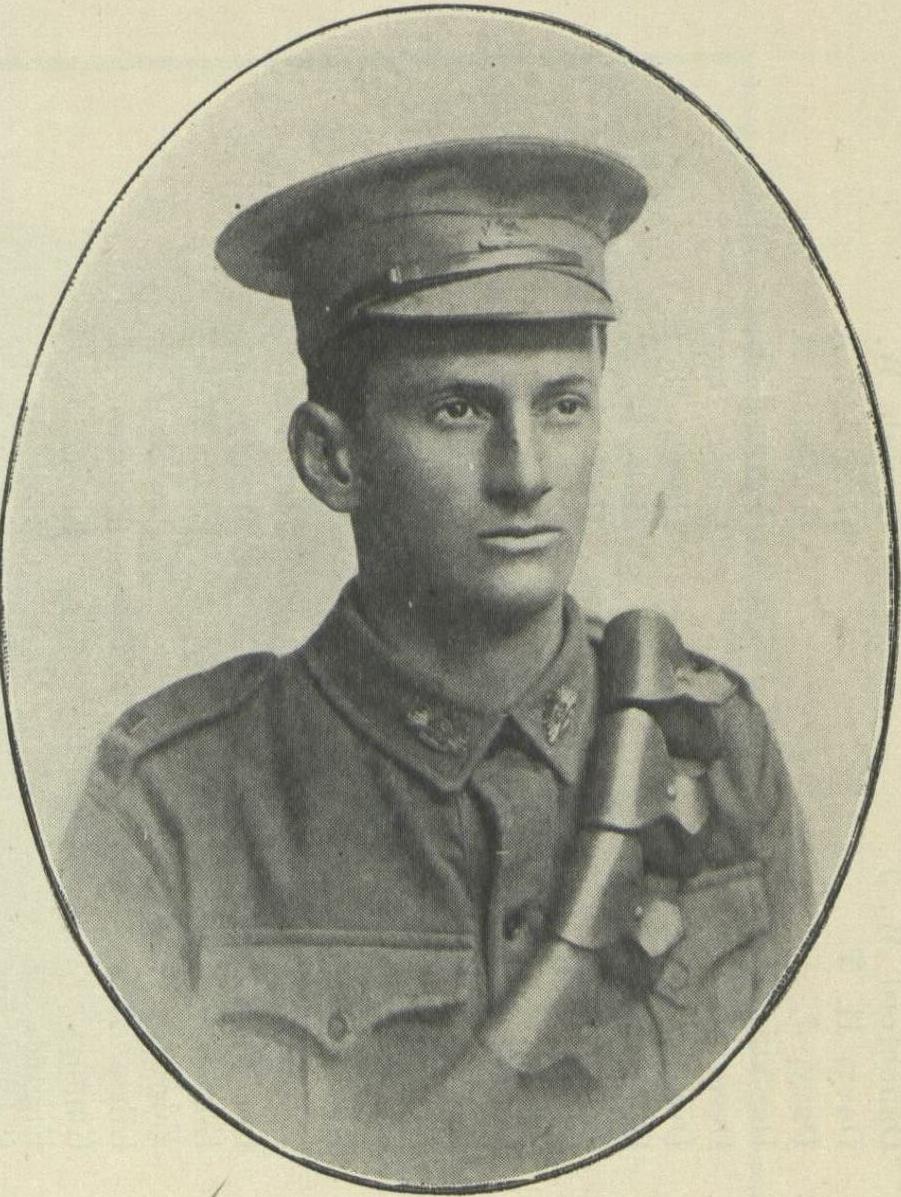 M.M., B.Ec. : Corporal, 9th Light Trench Mortar Battery, A.I.F., France. Enlisting 1st August, 1916, and sailing 19th September, served with unit from 29h July, 1917 , to 29th September, 1918. Gassed at Villers-Bretonneux in April and wounded at Gouay in September, being returned to Australia 8th April, 1919. Awarded M.M. at Bray in 1918. Member of St. Andrew''s College, with one year in Arts.