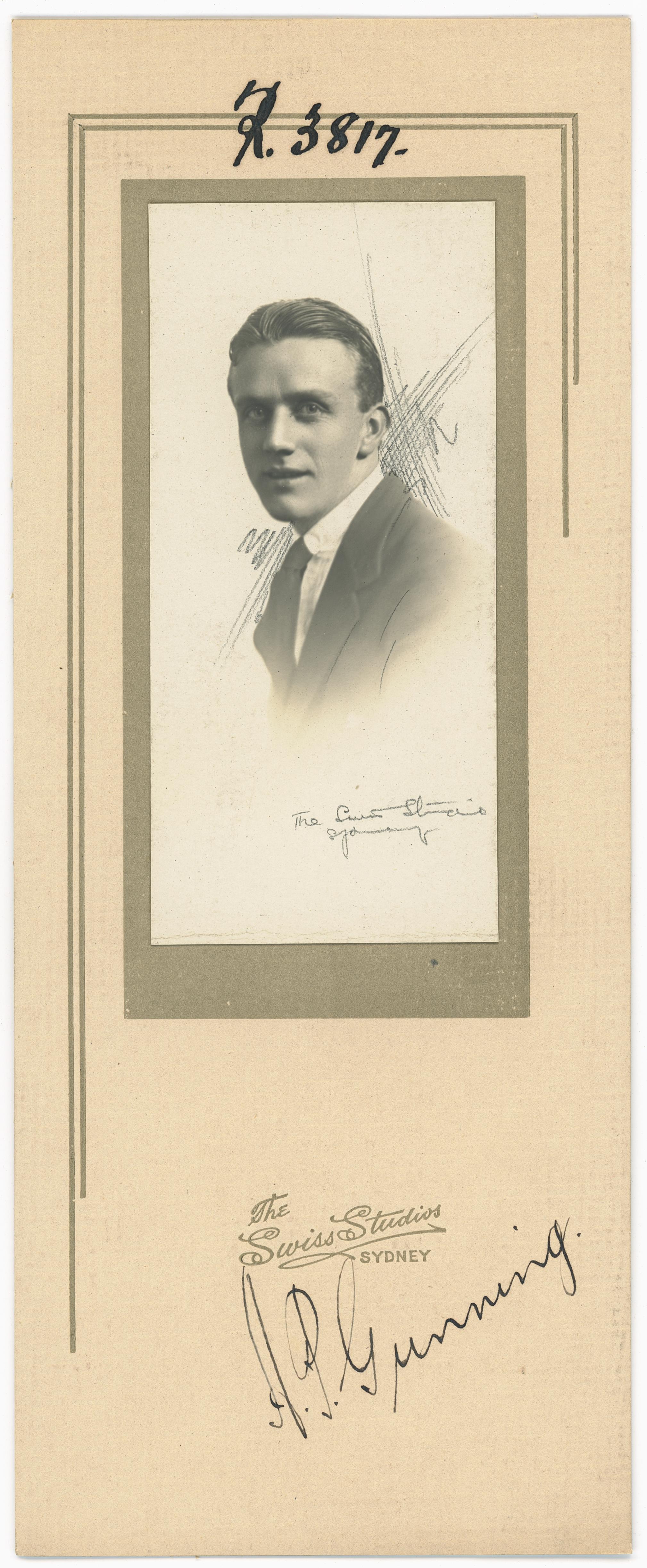 M.B., Ch.M. : Captain, A.A.M.C., A.I.F., England. Enlisting 4th November, 1918, served until demobilised in United Kingdom 19th September, 1919, but subsequently returned to Australia. Early education at Neutral Bay Public and North Sydney High Schools.