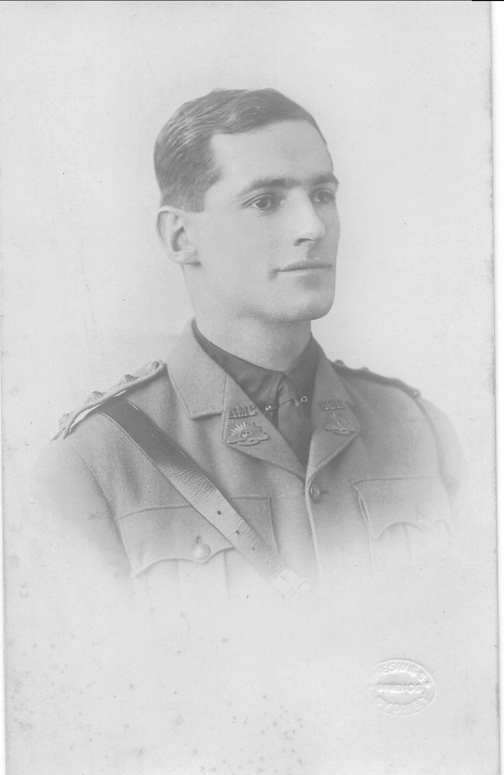M.B., Ch.M. : Captain, A.A.M.C., A.I.F., England and France. Enlisting 6th November, 1916, and sailing in January, 1917, as S.M.O. troopship "Ajana ", served a short time at Harefield Hospital and then crossing to France, at No. 2 Australian General Hospital, Wimereux. Joining Australian Field Ambulance 24th July, was M.O. No. 2 Casualty Clearing Station, Steenwerck, during August and R.M.O. 4th Battn. from 3rd September. Transferring to 1st M.G. Battn. 19th April, 1918, was wounded severely at Proyart 25th August and, as a result, was in hospitals in France and England for ten months. Returned to Australia via U.S.A. in April, 1921. Early education at Sydney Church of England Grammar School. Later at St. Paul's College.
