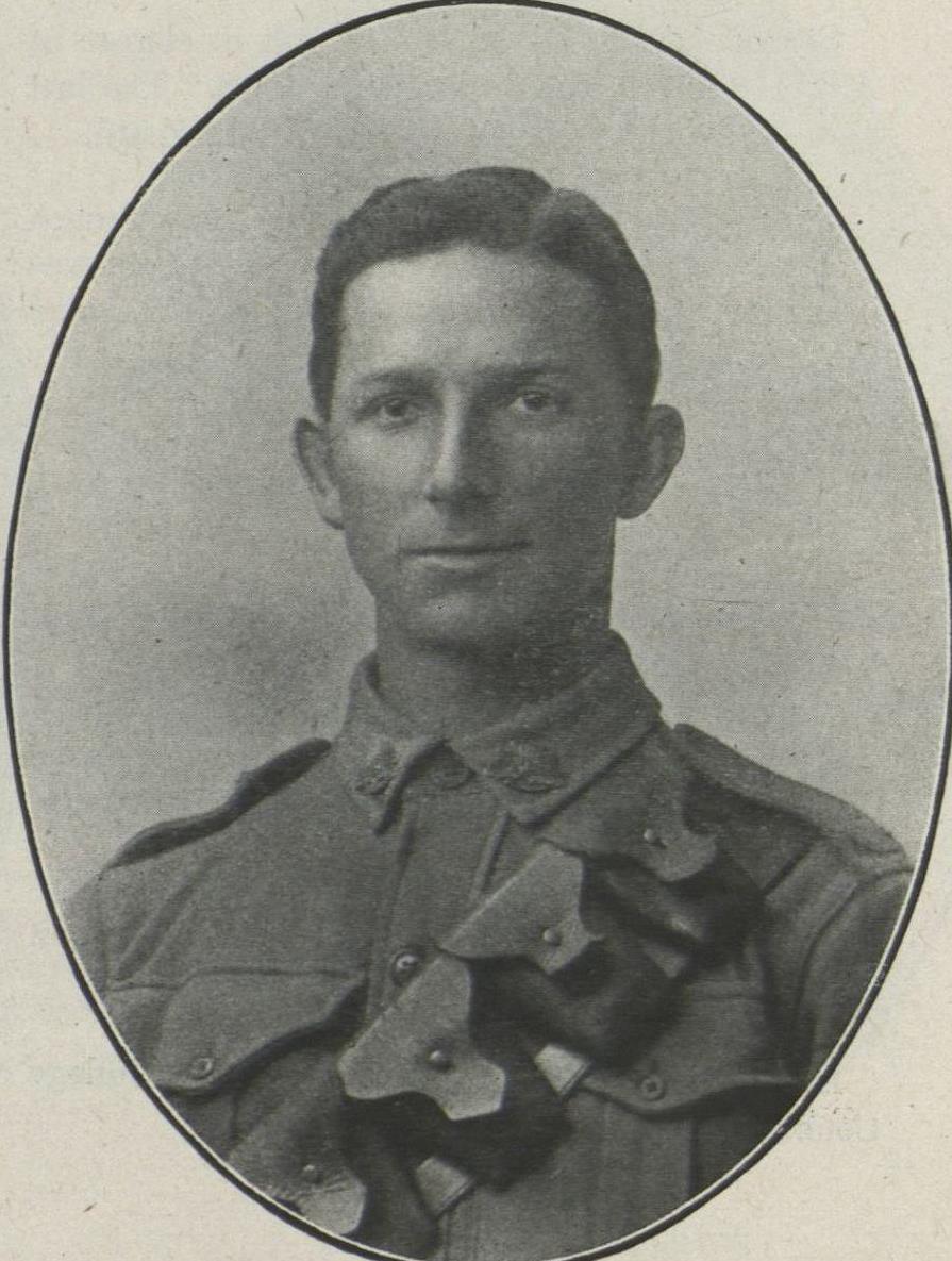 B.A. : Sapper, 1st Division Signal Coy., A.I.F., France. Enlisting in March, 1916, and sailing 25th October, joined unit in France in September, 1917. Wounded at Hooge and evacuated to England 4th October. Rejoining coy. in March, 1918, was again wounded and evacuated to England from the Somme sector 22nd August. Rejoining unit again n th November, served until February, 1919, and returned to England for educational work until demobilisation. Early education at Balmain Superior Public School. Later at Teachers' College.