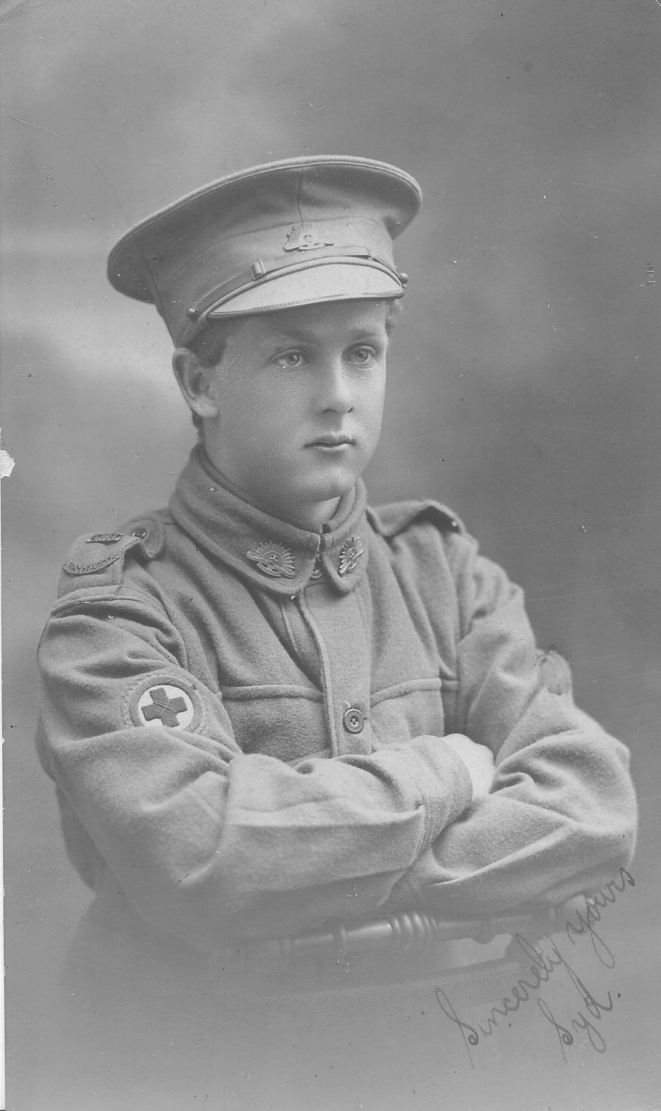 Med. I : Private, A.A.M.C., A.I.F., France and England. Enlisting 1st June, 1916, when 17, and sailing 8th August, 1917, crossed to France 31st October and served at No. 2 Australian Divisional Base and No. 1 Australian Convalescent Depots till 6th December, 1918. Then was at Hurdcott and Fovant Camps and No. 1 Australian General Hospital, Sutton Veny, returning on hospital ship Karoola for demobilisation. Early education at Fort St. High School.